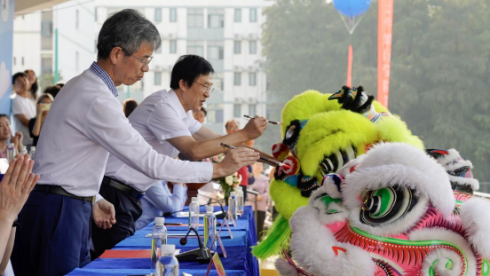 党委书记彭德忠、校长高连顺用朱砂为狮子点睛