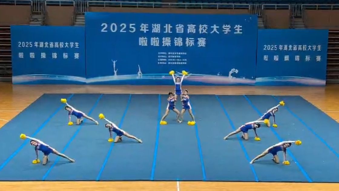本次锦标赛由湖北省学生体育协会主办,武汉体育学院承办,旨在通过学校体育让广大青少年“享受乐趣、增强体质、健全人格、锻炼意志”,实现学校体育高质量发展目标。比赛分别设有五大项,共32个赛道,分为普通组、高水平组、高职组,囊括舞蹈啦啦操、技巧啦啦操等多种类型,近40所高校的64支队伍代表参赛。备赛期间,全体队员团结一心,认真训练,反复打磨动作,精准把控节奏。徐妍老师全程悉心指导,对动作编排的创新设计到队形转换的流畅衔接进行严格把控。